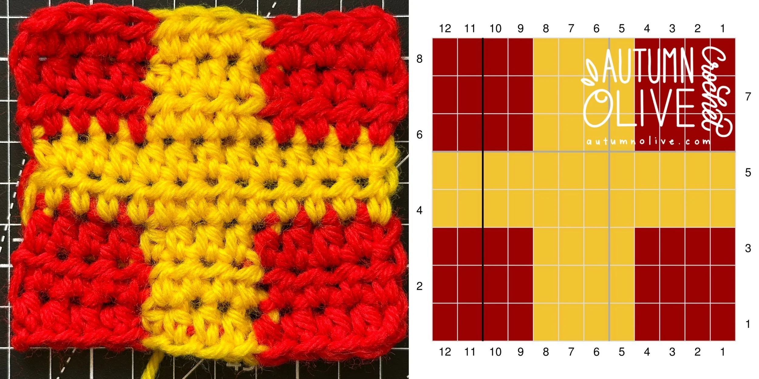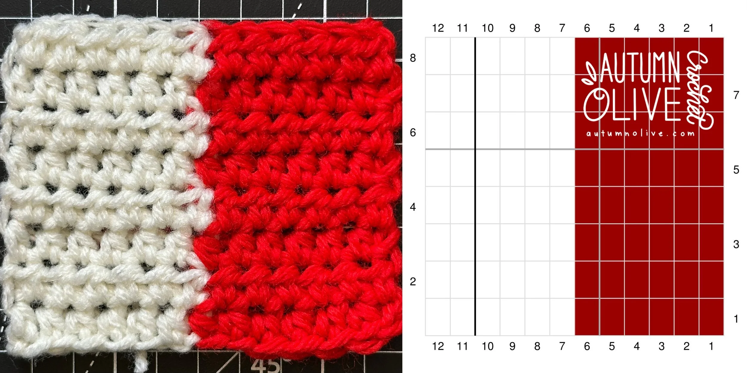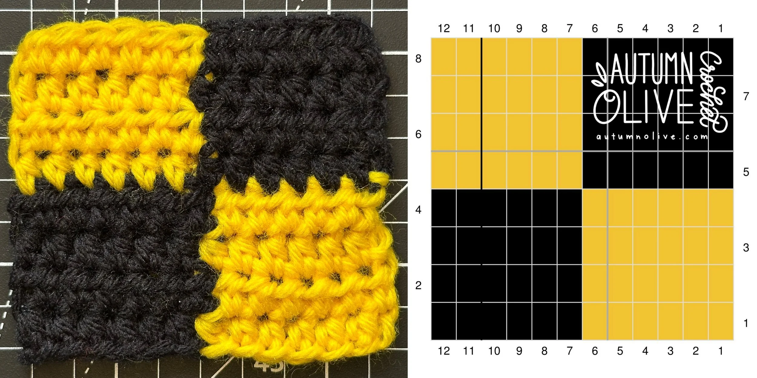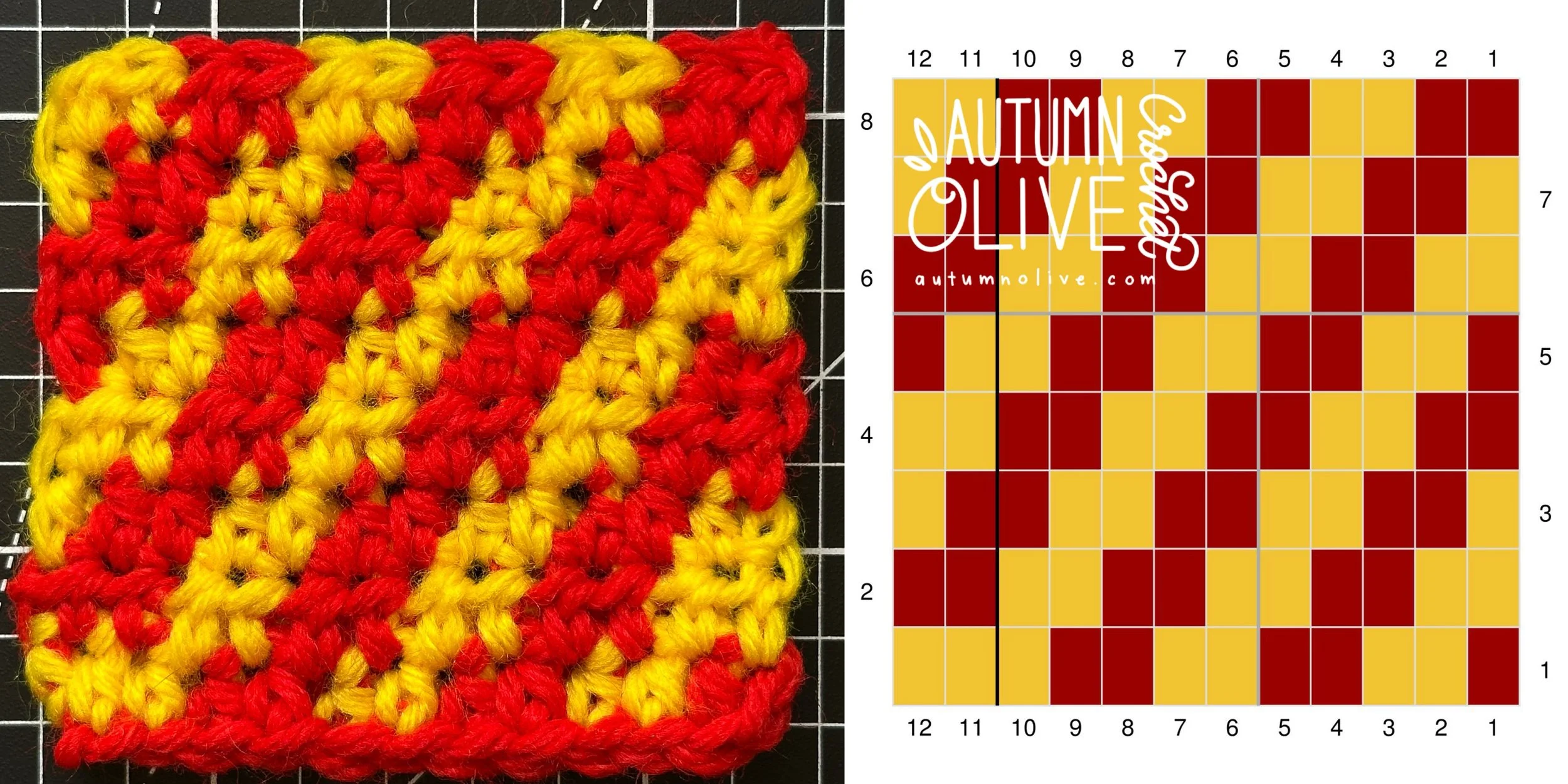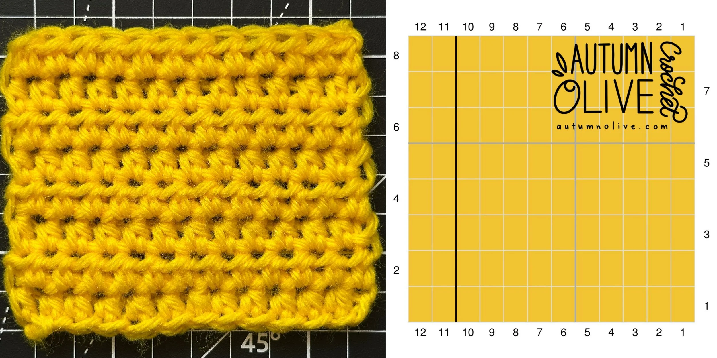 you can use any hook & yarn combination that suits your project for these graphs; I used size 4 worsted weight yarn & 5mm hook