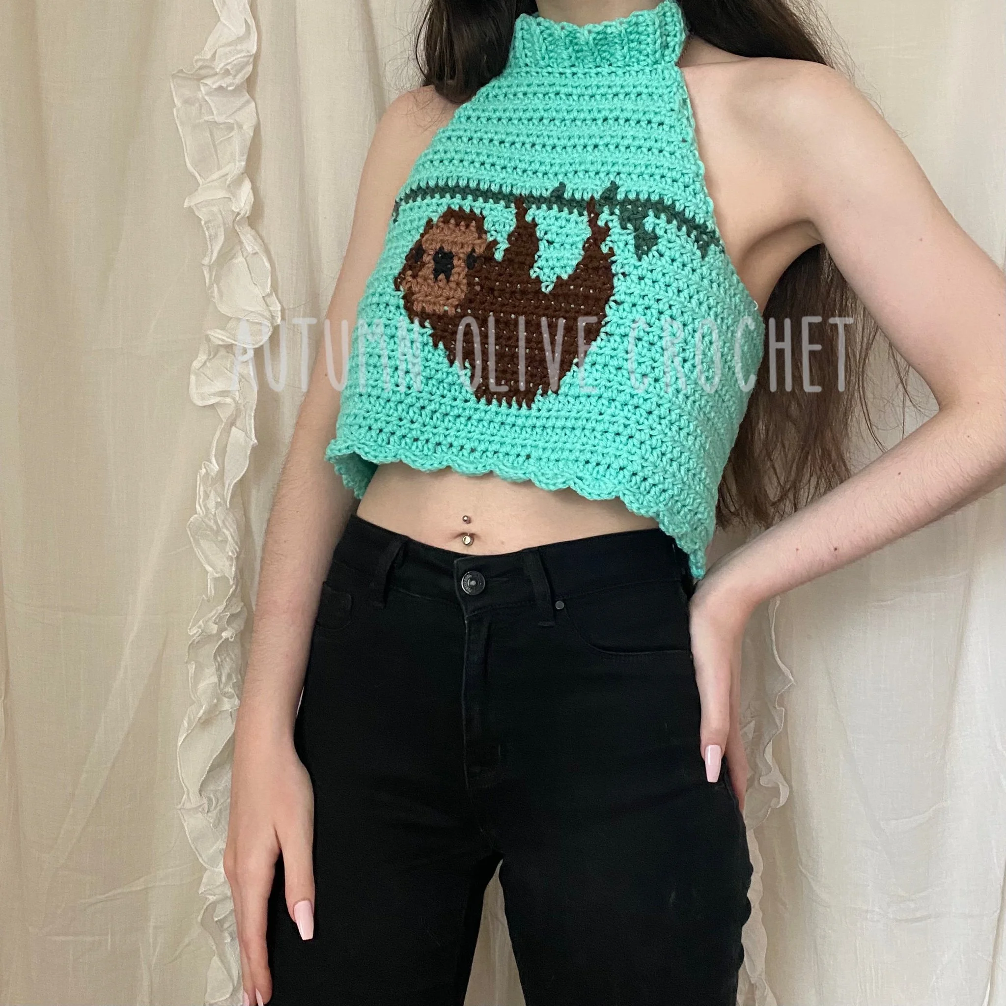 holly halter top pattern is FREE ♡ put a sloth on it 🦥✨