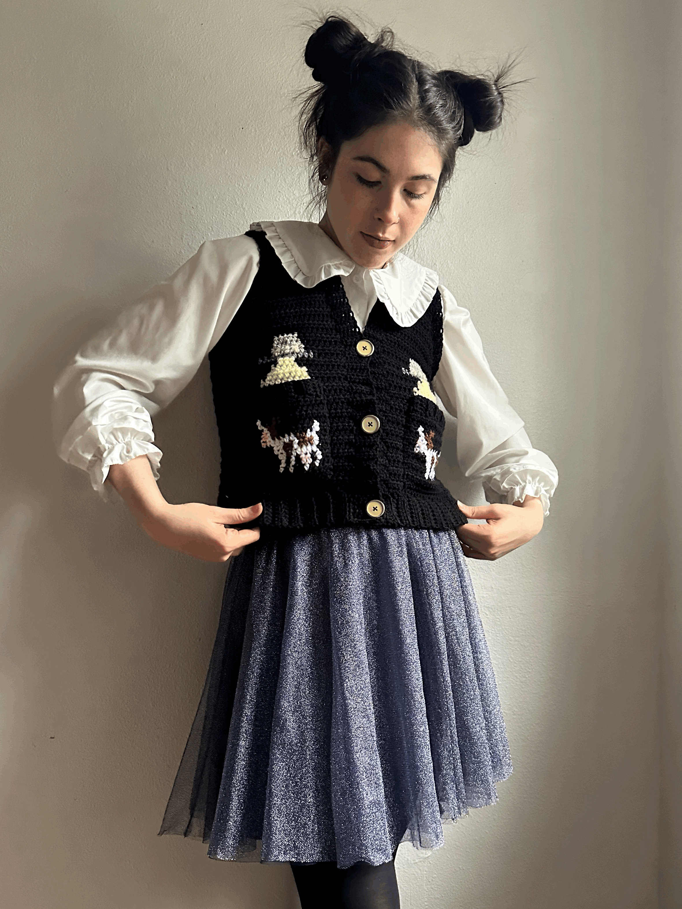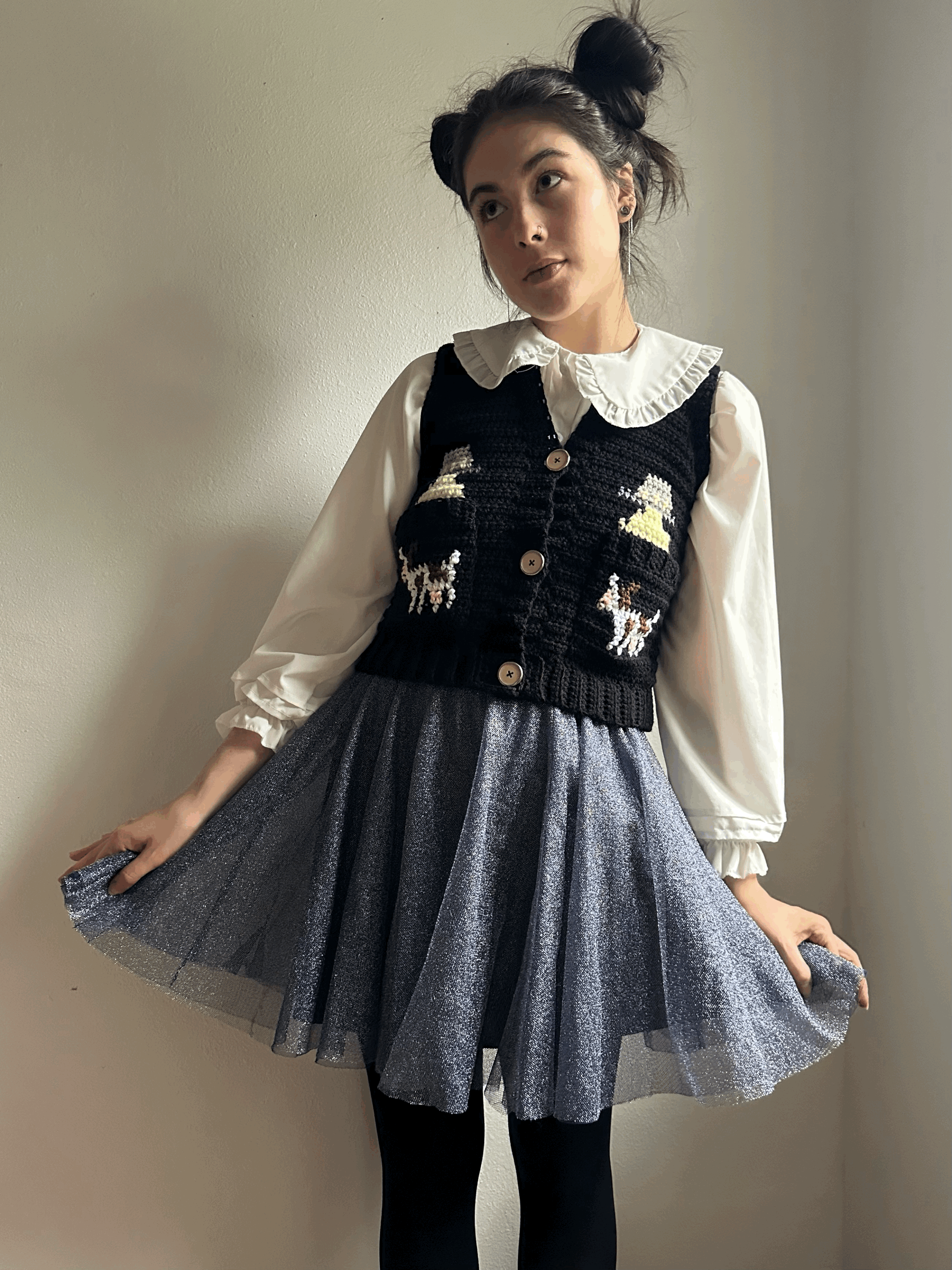 available pieces ♡ Categories: Select a Category clothing ♡ sweaters ♡ tops / bottoms ♡ dresses ♡ jackets ♡ outfits ♡ cotton ♡ kids ♡ winter whimsy ♡ accessories ♡ clearance ♡ stickers ♡ available pieces ♡ clothing ♡ | winter whimsy ♡ | accessories ♡ | clearance ♡ | stickers ♡ | snowy deer blanket sweater | XS-M $75.00 70s colorblock knit sweater | XS-XL $120.00 70s vintage floral pants | XS-3X $90.00 Sold Out 70s vintage fringe skirt | XS-M $80.00 orange fanta retro sweater | M-XL $250.00 ramune denim tote bag $55.00 mountain dew denim tote bag $55.00 orange crush denim tote bag $55.00 diet coke denim tote bag $55.00 Sold Out A&W root beer denim tote bag $55.00 sprite denim tote bag $55.00 jarritos denim tote bag $55.00 cosmic cardigan | M-XL $225.00 abduction vest | XS-S $150.00 space journey jacket | XXL $90.00 moonlight gown | S-M $120.00 s'mores patchwork turtleneck - XL $250.00 vintage scooby doo dress | S-L $95.00 Sold Out golden harvest dress | S-L $75.00 garden goddess dress | S-L $75.00 night vines clown suit | XS-2X $190.00 Sold Out farthest harvest clown suit | XS-2X $190.00 Sold Out fungi lullaby clown suit | XS-2X $190.00 Sold Out fungi denim jacket | kids 8/10 $35.00 harvest cape | 50" $45.00 garden cape | 46" $45.00 floral foliage cape | 42" $45.00 brown square top - M/L $25.00 crochet clown collar $30.00 mabel's long dog sweater | XS-M $200.00 tentacle pocket cardigan | S - L $225.00 ASL ILY pop art jacket | XL $75.00 lipstick kisses cardigan - L $225.00 kisses shimmer dress with pockets - M/L Sale Price: $90.00 Original Price: $120.00 Sale sunny cloud suit | XS/S $90.00 ghost in a cardigan sticker $3.50 magnet!! ghost in a cardigan $5.00 fox in a cardigan sticker $3.50 magnet!! fox in a cardigan $5.00 bubbline sweatshirts | M-XXL $48.00 mabel pines sweatshirt | M-XXL $48.00 cartoon fish costume set | XS - L $275.00 pirate boat denim coat | XL $90.00 submarine jean jacket | XXL $90.00 row boat tote $25.00 speed boat tote $25.00 cargo vessel denim vest | XXL $75.00 ocean liner pullover | M-XL $225.00 ahoy! sailboat tee | XS - M $120.00 paper boat dress w/ pockets | XS - M $120.00 "oil spill" cotton knit top | XS-L $60.00 vintage horses picnic top | M-XL $45.00 cinderella skirt | XS-3X $45.00 blue birds dress with pockets - M Sale Price: $35.00 Original Price: $60.00 Sale cherry limeade cardigan | M - XL $225.00 very berry vest | XS - M $120.00 morse code t-shirt | XS - M Sale Price: $60.00 Original Price: $90.00 Sale koi pond quilt jacket | XL $65.00 carnival vest jacket | XXL $60.00 Sold Out clownfish dress w/ pockets | XS - M $120.00 purple panda cardigan - S/M $200.00 tiny hearts dress with pockets - S/M $100.00 Sold Out snowflake sparkle vest - M $60.00 100% cotton sparkle dress - M $120.00 reindeer princess gown - M $130.00 peppermint princess gown - M $130.00 22" white knit cords $10.00 22" green knit cords $10.00 22" blue knit cords $10.00 sparkly clown ruffles $25.00 5” gold/yellow leather bag $20.00 10” white/denim leather bag $25.00 5” tan/sparkle leather bag $20.00 10” white/yellow leather bag $25.00 button!! goose in a cardigan $4.00 reversible! pink & gray sweater set - S $60.00 100% cotton lounge shorts - XS/S $50.00 goldfish hat - 100% cotton $25.00 Sold Out 100% cotton sun hat - tie dye Sale Price: $15.00 Original Price: $25.00 Sale sun hat - "shortcake" Sale Price: $15.00 Original Price: $25.00 Sale poppy denim jacket | kids 10/12 $35.00 lakeside denim jacket | kids 6/8 $35.00 panda denim jacket | kids 2/4 $35.00 crochet cloud cherub sticker $3.50 'made with love' sticker $3.50 reindeer in a cardigan sticker $3.50 monkey in a vest sticker $3.50 goose in a cardigan sticker $3.50 crochet blue bear sticker $3.50 custom for Rhiannon $50.00 tiger dress with pockets - M $100.00 Sold Out custom moon dress for Anna $120.00 Sold Out dr pepper retro sweater | M-XL $250.00 Sold Out